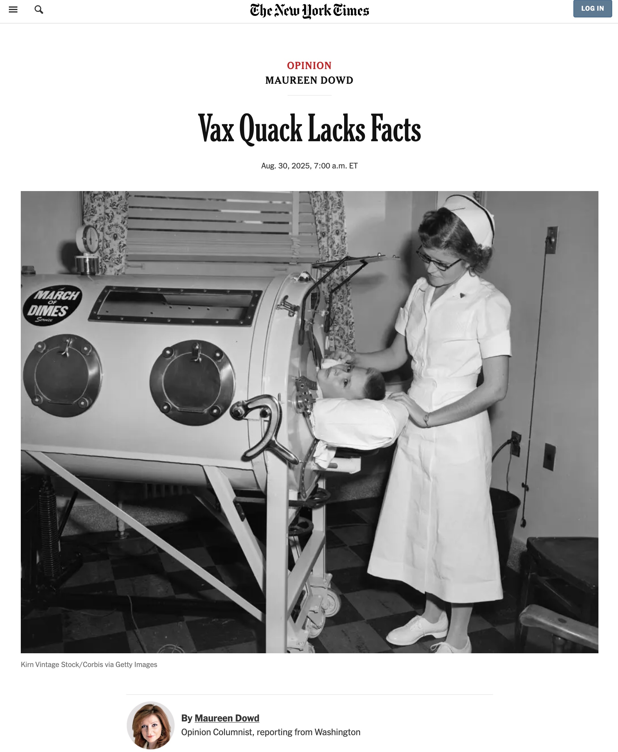 2: M Dowd, “Vax Quack Lacks Facts”, New York Times 2025-Aug-30.