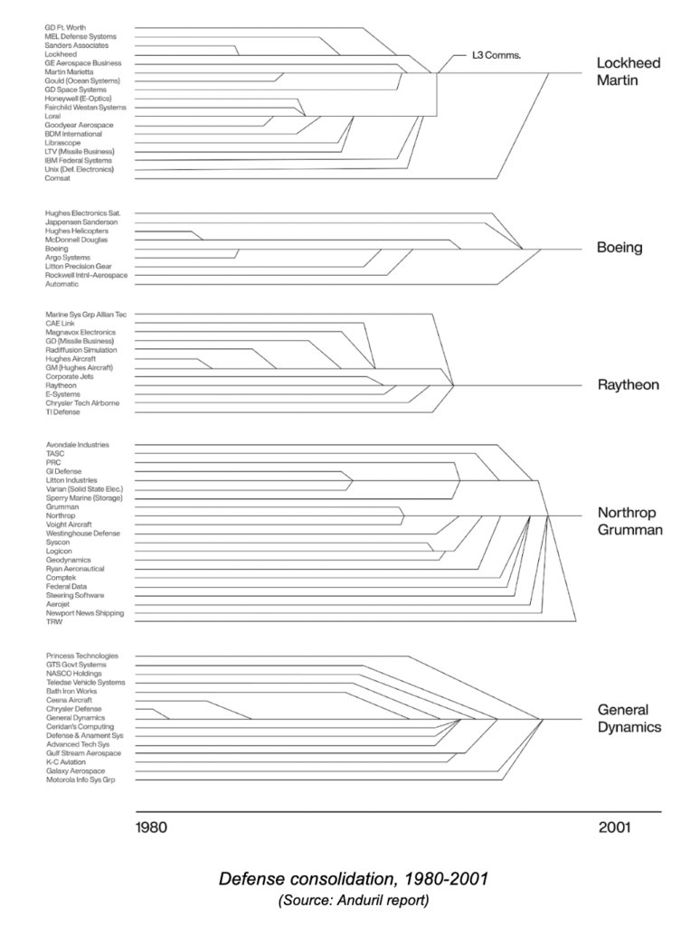 - Defense contractors (upper left) have collapsed from 75 companies to just 5.