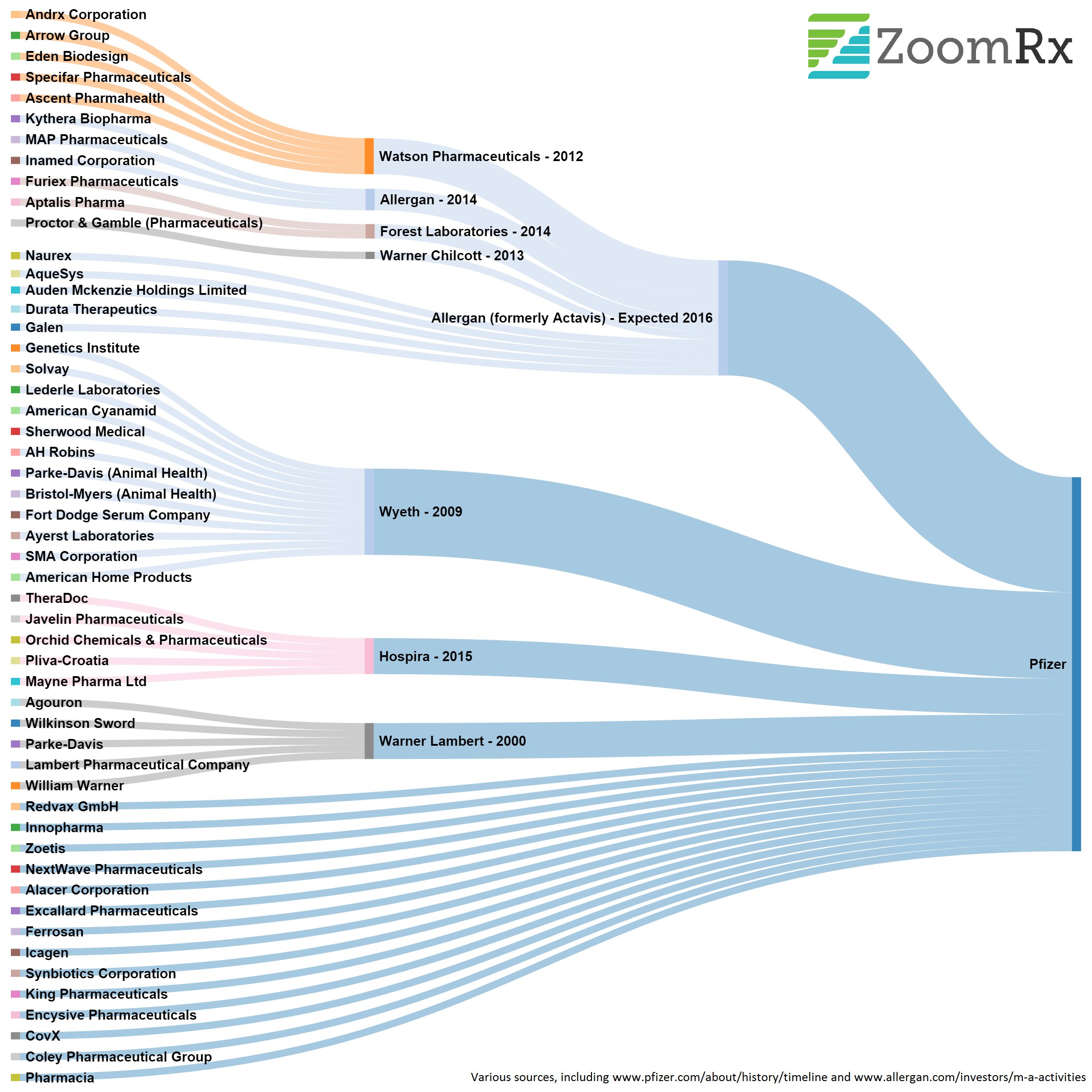 Pfizer (combining 52 companies into 1 giant), and Sanofi (combining 18 companies into 1 giant).