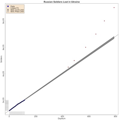Once again, it is our sad duty to check in with the regression model of Russian casualties that we built on the first 116 days of the war.