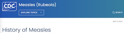 3: CDC Staff, “History of Measles”, US Centers for Disease Control web site, 2024-May-09. Downloaded 2025-Mar-17. ↩